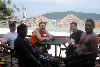 my good fren, Zaidon, the resident manager (partly hidden) briefing or was it debriefing(?) a group of young Tailor's college students in hotel catering, doing their practical at bubu longbeach resort...